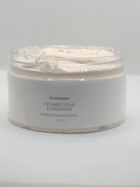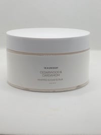Scented with the grounding notes of cedarwood and the subtle spice of cardamom, this scrub turns your shower into a warm, aromatic escape. Its whipped texture spreads easily, rinses cleanly, and leaves behind only silky, hydrated skin.